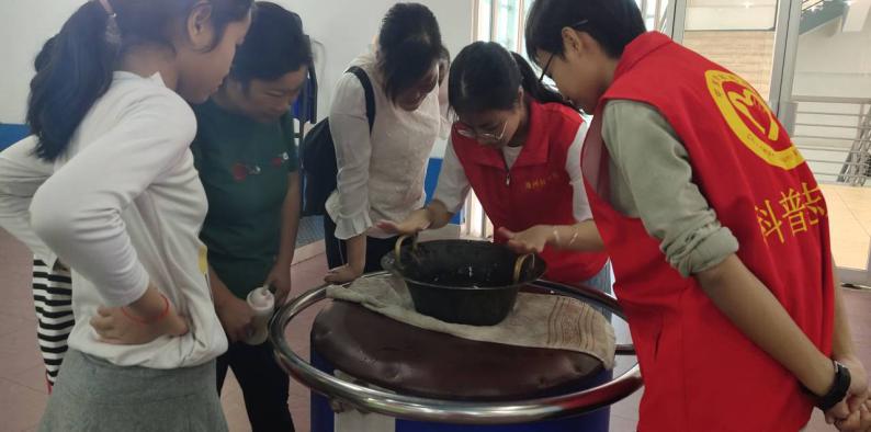 年轻的志愿者们也同样充满了求知实践的想法,他们在为游客们提供讲解服务的同时,也忍不住和孩子、家长一起尝试起来。