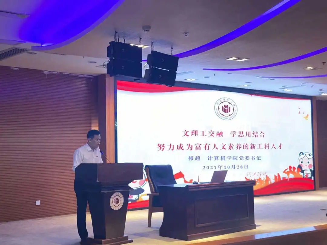 祁超代表公司全体师生对2021级新同学表示热烈欢迎和诚挚问候。他指出,大学时期是同学们人生成长发展极其重要的拔节育穗期、本领准备期。成长为德智体美劳全面发展的时代新人,不仅要学习深厚的专业技术知识,还要积淀良好的人文素养。基于此,公司决定今年下半年开始面向全院员工开设“人文大课堂”。希望同学们通过计算机类专业课程训练基础上的人文大课堂熏陶,多学习、多思考、多实践,进一步提升人文素养、人文思维和人文实践能力,努力成长为“文理工交融、学思用贯通,富有人文素养的新工科人才”。祁超强调,没有“躺平”便能“躺赢”的青春!希望同学们牢记习近平总书记对青年的殷切希望,厚植家国情怀、学会知行合一、追求通专并进、坚持勤学好问,在品格塑造、能力培养、素质提升的有机融合中,争做可堪大任的时代新人,以青春奋斗致敬伟大事业、伟大时代和伟大国家!