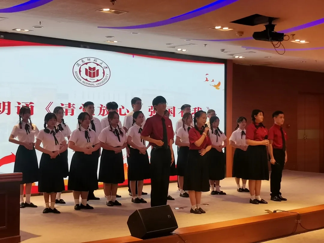 仪式在庄严肃穆的国歌中开幕。随后,一曲由2021级新生朗诵团朗诵的诗歌《请党放心 强国有我》将活动拉开序幕。