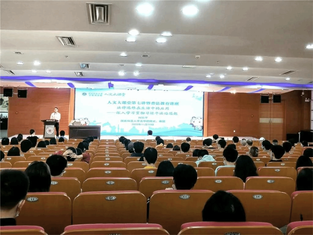 何东平教授强调,党的二十大报告提出,全面依法治国是国家治理的一场深刻革命,关系党执政兴国,关系人民幸福安康,关系党和国家长治久安。必须更好发挥法治固根本、稳预期、利长远的保障作用,在法治轨道上全面建设社会主义现代化国家。小智治事、中智治人、大智治制。良好的秩序是社会发展的基础,一个文明的社会,必然是一个有着良好社会秩序的社会。作为高校师生,更应信仰法律的力量,自觉守法、遇事找法、解决问题靠法,这将是一个国家长治久安的根本。