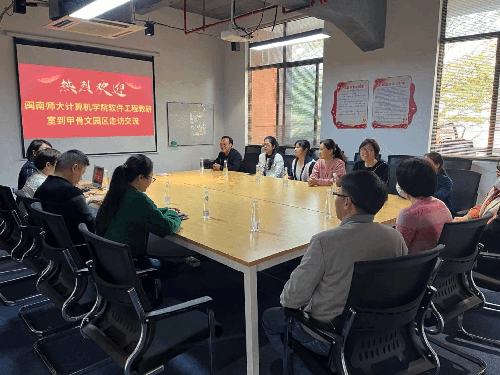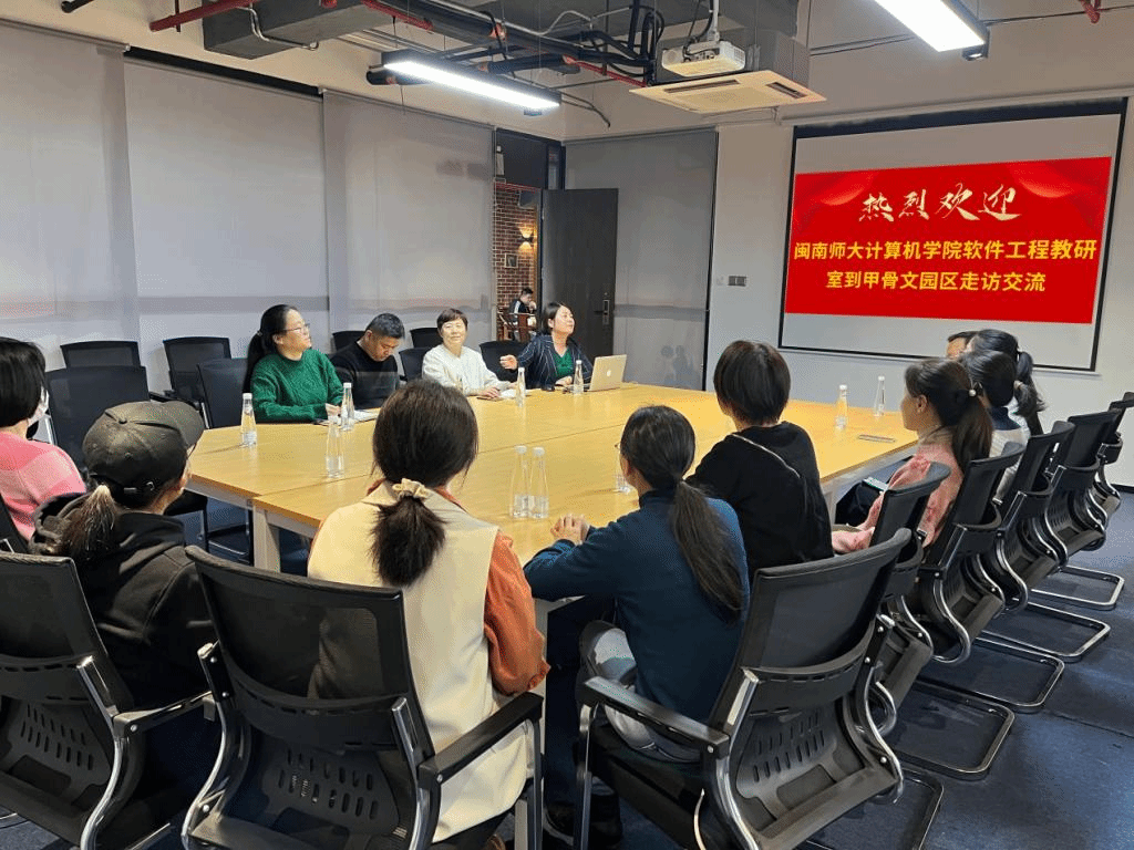 考察组一行先后走访了甲骨文技术人才双创基地、福建天心软件开发有限公司、漳州星蝶软件开发有限公司、漳州抓手软件开发有限公司、漳州新特域网络科技有限公司等相关企业,并开展座谈。座谈会上,双方就人才培养、专业建设、岗位招聘、园区运行、老员工创新创业孵化相关政策、企业项目开发等主题开展了深入交流,为双方详细了解计算机软件工程专业人才培养、行业发展形势和企业人才需求提供了良好的契机。