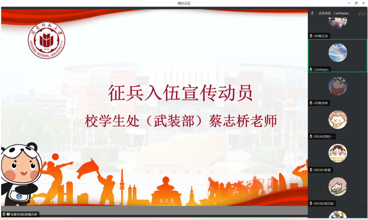 蔡志桥老师从人生方向、职业发展、技能提升、待遇保障等四个方面对国家现行征兵入伍政策进行详细的介绍。他鼓励毕业生将个人发展与国家发展相结合,响应国家号召应征入伍,主动承担起保家卫国的光荣义务。