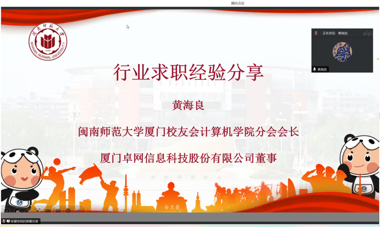 本次家长会公司特别邀请了优秀员工代表、厦门卓网信息科技股份有限公司董事黄海良,校武装部综合科副科长蔡志桥老师、数学与统计公司辅导员李伟俊老师开展专题辅导报告。