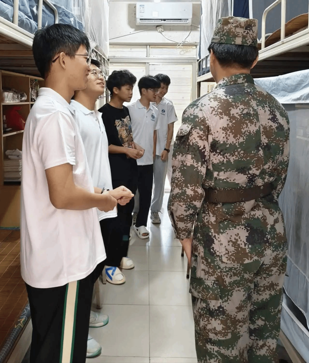整理教学结束后,督察队员们和新生进行了深入交流,他们用自己的故事,号召每一位刚步入大公司园的萌新,珍惜宝贵的青春时光,以中国军人为榜样,勇于担当,积极奋进。