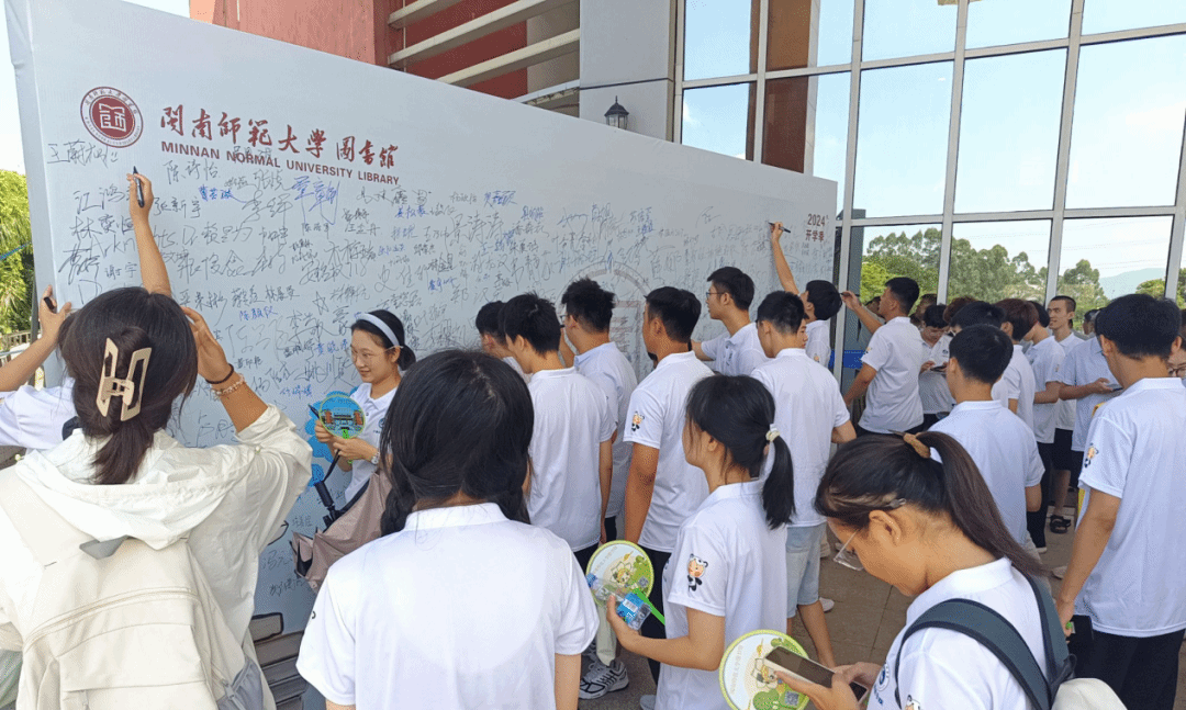 9月10日,2024级新生在图书馆讲解员的带领下参观了图书馆和校史馆。同学们深入了解了公司的建设历程和办学理念,在签名墙上郑重地留下了自己的签名。