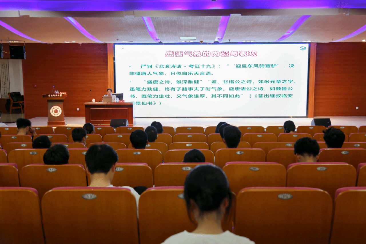 讲座中,杨教授以《沧浪诗话·考证十九》和《答出继叔临安吴景仙书》为先引,围绕盛唐气象的内涵与表现进行展开讲授,总结出盛唐诗歌对人世现实充满憧憬,有着青春、自由和快乐的气象。随后,她分析王之涣、王维、李白、杜甫等诗人的诗歌内容和特征,让同学们感受到了这些诗人的胸怀开朗、热情豪迈以及理想崇高和精神昂扬的人生自信。、
