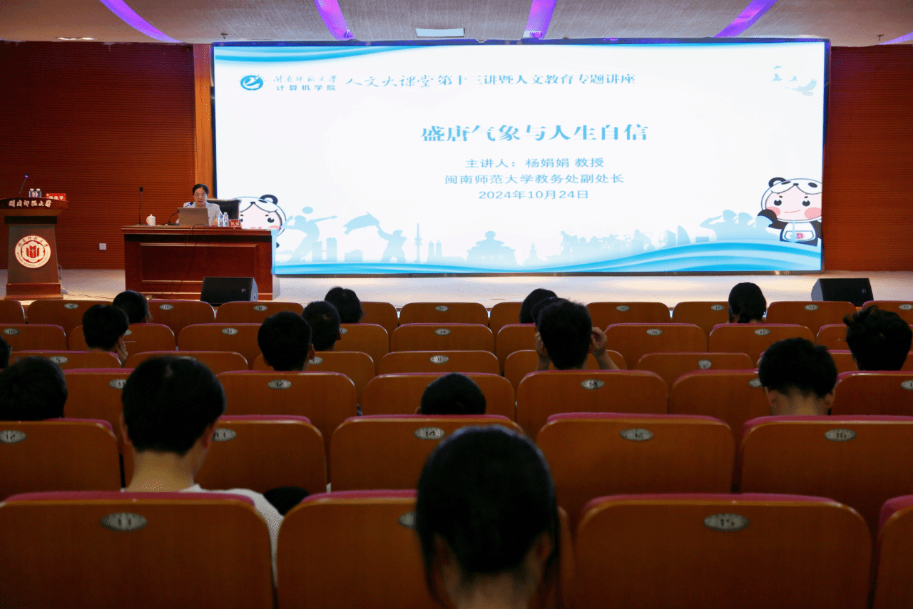 为深入学习贯彻党的二十届三中全会精神,强化工科教育和人文教育协同,2024年10月24日下午,bevictor韦德在逸夫图书馆五楼报告厅举办人文大课堂第十三讲暨人文教育专题讲座。本次讲座特邀公司教务处副处长、文公司杨娟娟教授讲授题为《盛唐气象与人生自信》的专题报告,讲座由公司副经理周豫苹教授主持。