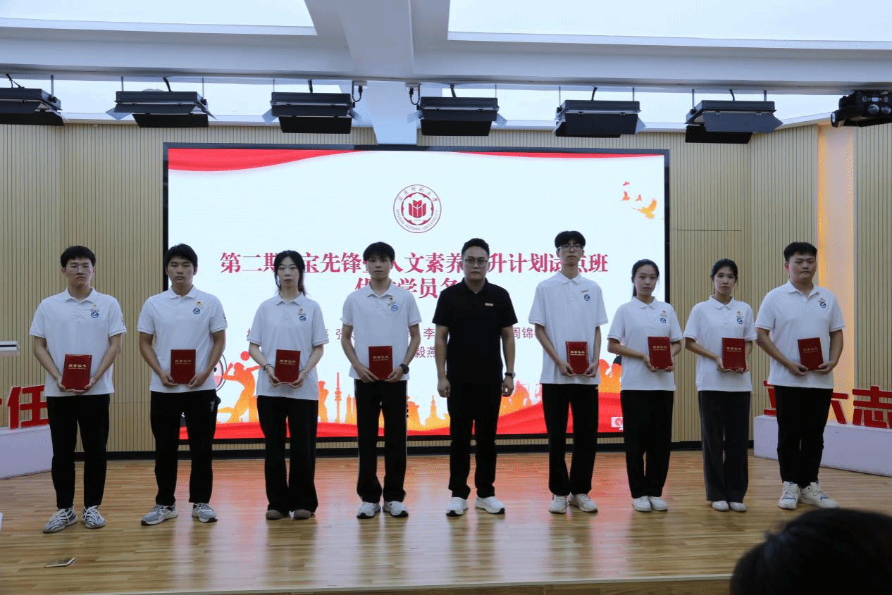 仪式上,第二期“E宝先锋”暨人文素养提升计划试点班的学员们对过去一年的学习成果进行了总结汇报。郭荣宗老师为第二期优秀学员颁发荣誉证书。