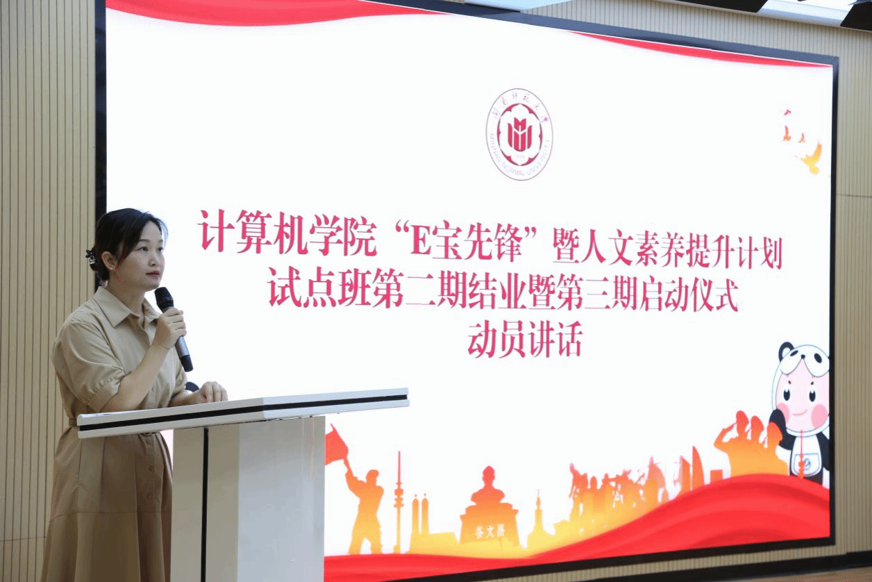 最后,公司党委副书记陈老师作动员讲话,并对全体学员提出了三点希望:一是保持“E宝先锋班”的特色,兼顾科技与人文,实现跨学科学习,既深耕计算机科学,又广泛涉猎人文社科,促进全面发展;二是明确身份和责任,扮演好员工和员工干部的双重角色,将学习作为信仰,锤炼品格,练就过硬本领,发挥模范带头作用;三是充分利用“E宝先锋班”平台,主动锻炼,勇于创新,追求卓越,不断提升和完善自我。