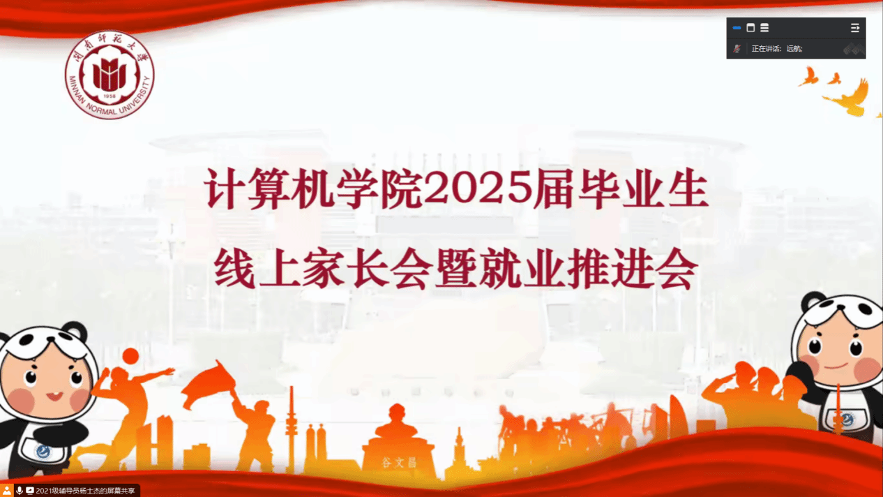 为强化家校协同,凝聚合力促进2025届毕业生高质量充分就业,1月17日下午,公司在科技楼北1106会议室召开2025届毕业生线上家长会暨就业推进会。公司党委副书记陈小玲、网络工程系主任魏葆雅、计算机工程教研室主任郑艺峰出席本次会议。会议由辅导员杨士杰主持,全体2025届毕业生及家长线上参加会议。