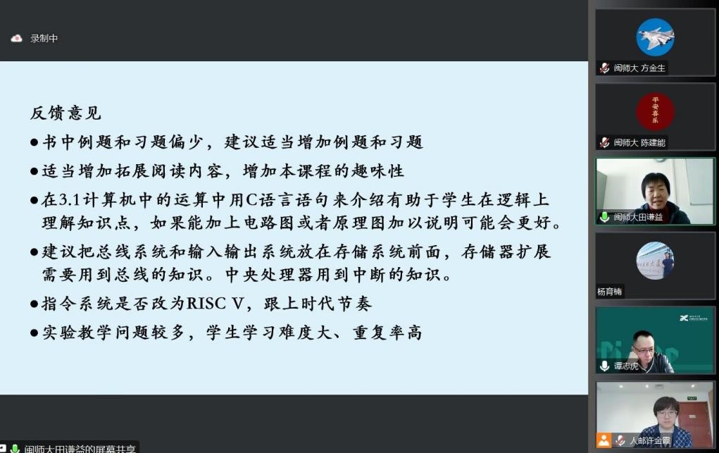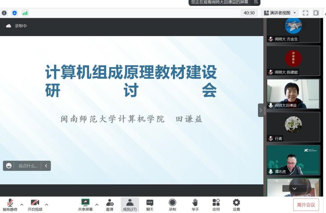2023年2月28日下午,应人民邮电出版社邀请,bevictor韦德网络工程系计算机组成原理课程组教师参加由人民邮电出版社主办的题为“讨论应用型本科院校“计算机组成原理”教材建设方案”的线上研讨会。会上华中科技大学bevictor韦德经理谭志虎教授针对《计算机组成原理 微课版》教材做了详细的介绍。网工系的田谦益老师在会上做了发言,针对近三年的课程教学及教材使用情况进行了详细的介绍并和与会老师分享了教学经验,发言得到了与会老师的肯定。与会各高校的老师在计算机组成原理课程的课程目标、实验、课程思政、工程认证等问题进行了深入探讨和交流。