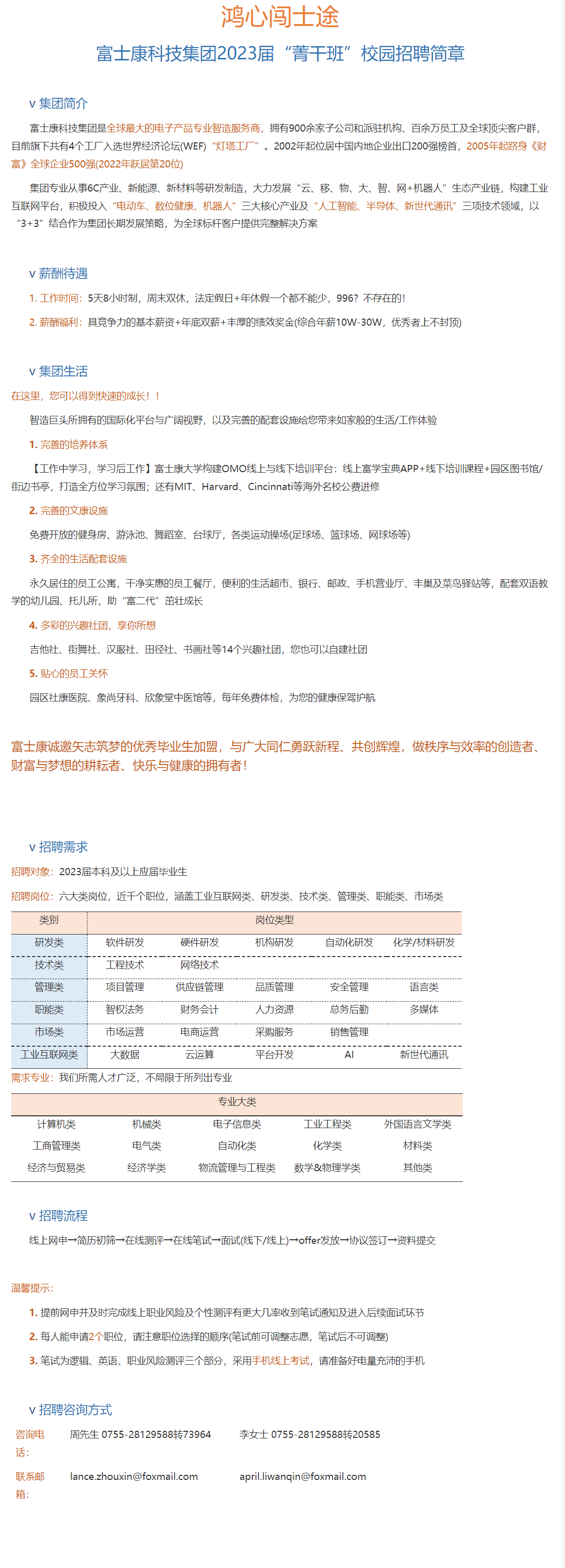 富士康科技集团2023届“菁干班”校园招聘简章