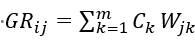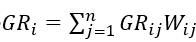 某条毕业要求(GRi)由多个毕业要求指标点(GRij)构成,则该条毕业要求的达成度是各毕业要求指标点达成度和各指标点权重的加权求和,如公式5-2所示。