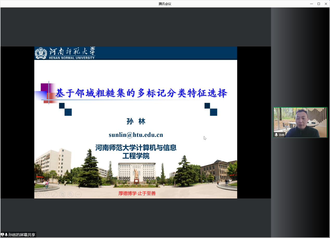 11月25日下午,河南师范大学计算机与信息工程公司的孙林教授应邀为公司师生作题为“基于邻域粗糙集的多标记分类特征选择”的学术报告。本次报告会采用腾讯会议线上方式进行,林耀进经理主持了本次报告会。