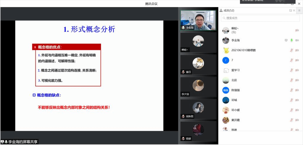 3月11日上午,昆明理工大学李金海教授应邀为公司师生开展线上专题报告,报告题目为“网络形式背景的概念知识发现”。报告会由林耀进经理主持,林经理对李教授的科研领域和相关成果进行了简要介绍,并就相关学术知识进行了简单交流,随后李教授开始作专题报告。