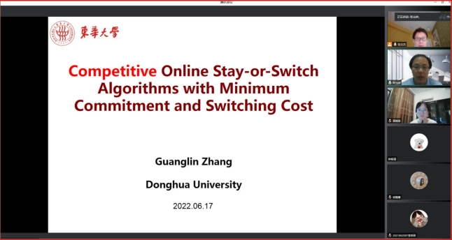 6月17日下午,东华大学信息科学与技术公司张光林教授应邀为公司师生开展线上专题报告,报告题目为“考虑最小承诺与切换成本的在线算法竞争性分析”。本次报告由公司张文杰教授主持,张文杰教授首先对张光林教授的科研领域和相关成果进行了简要介绍,随后张光林教授开始作专题报告。
