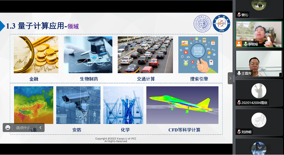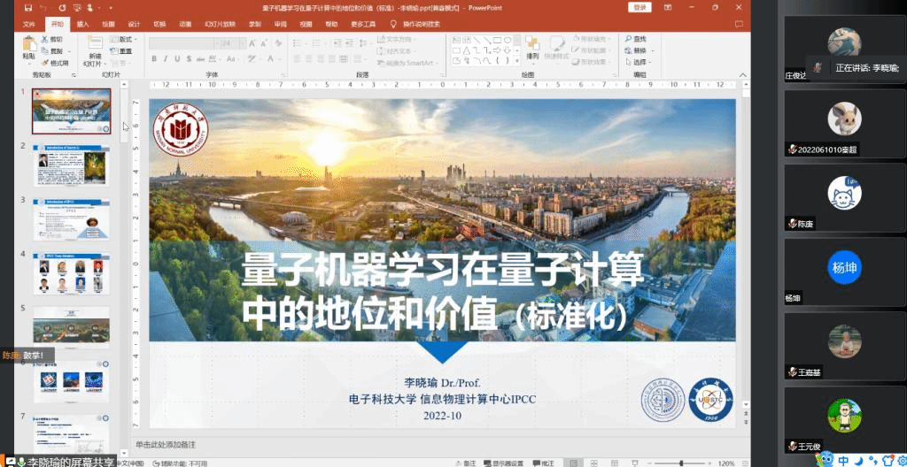 10月15日晚,电子科技大学李晓瑜副教授应邀为公司师生做线上专题报告,报告题目为“量子机器学习在量子计算中的地位和价值”,本次报告由公司王育齐副教授主持。