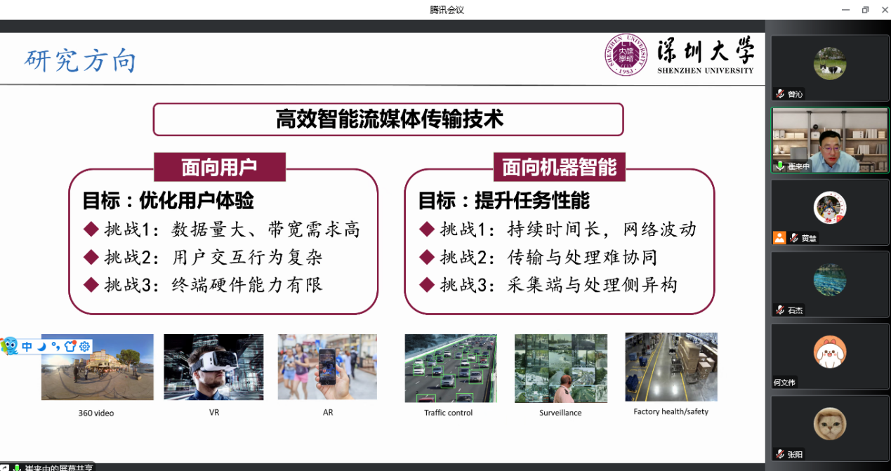 10月19日下午,深圳大学崔来中教授应邀为公司师生做线上专题报告,报告题目为“交互视频智能传输技术”,本次报告由公司黄慧副经理主持。