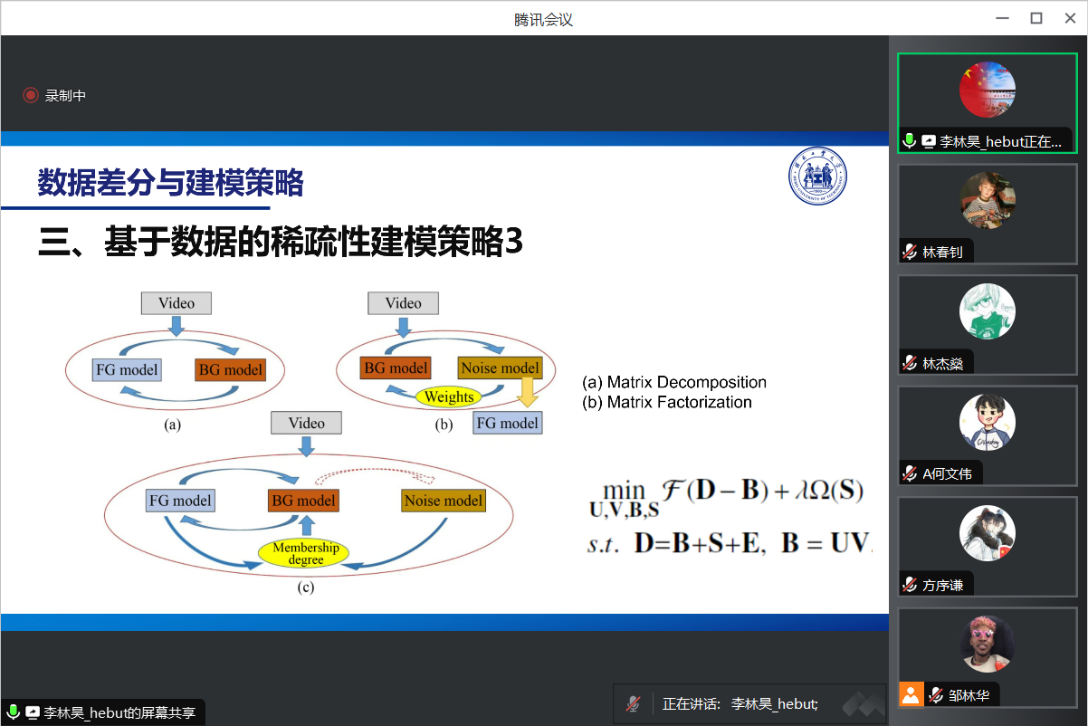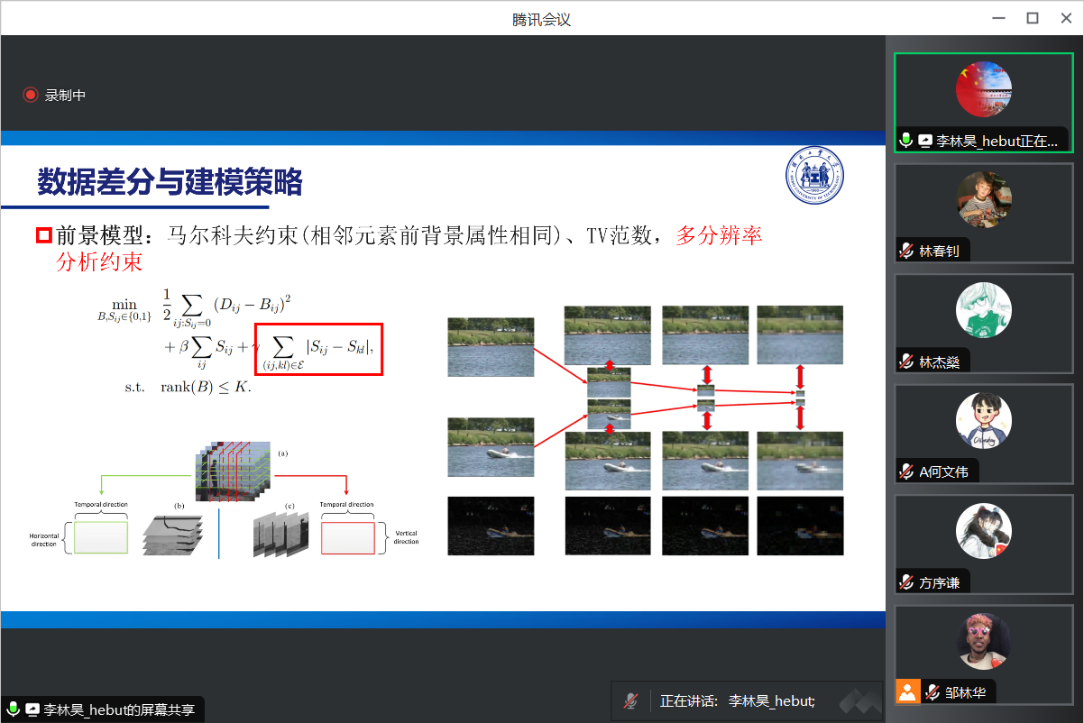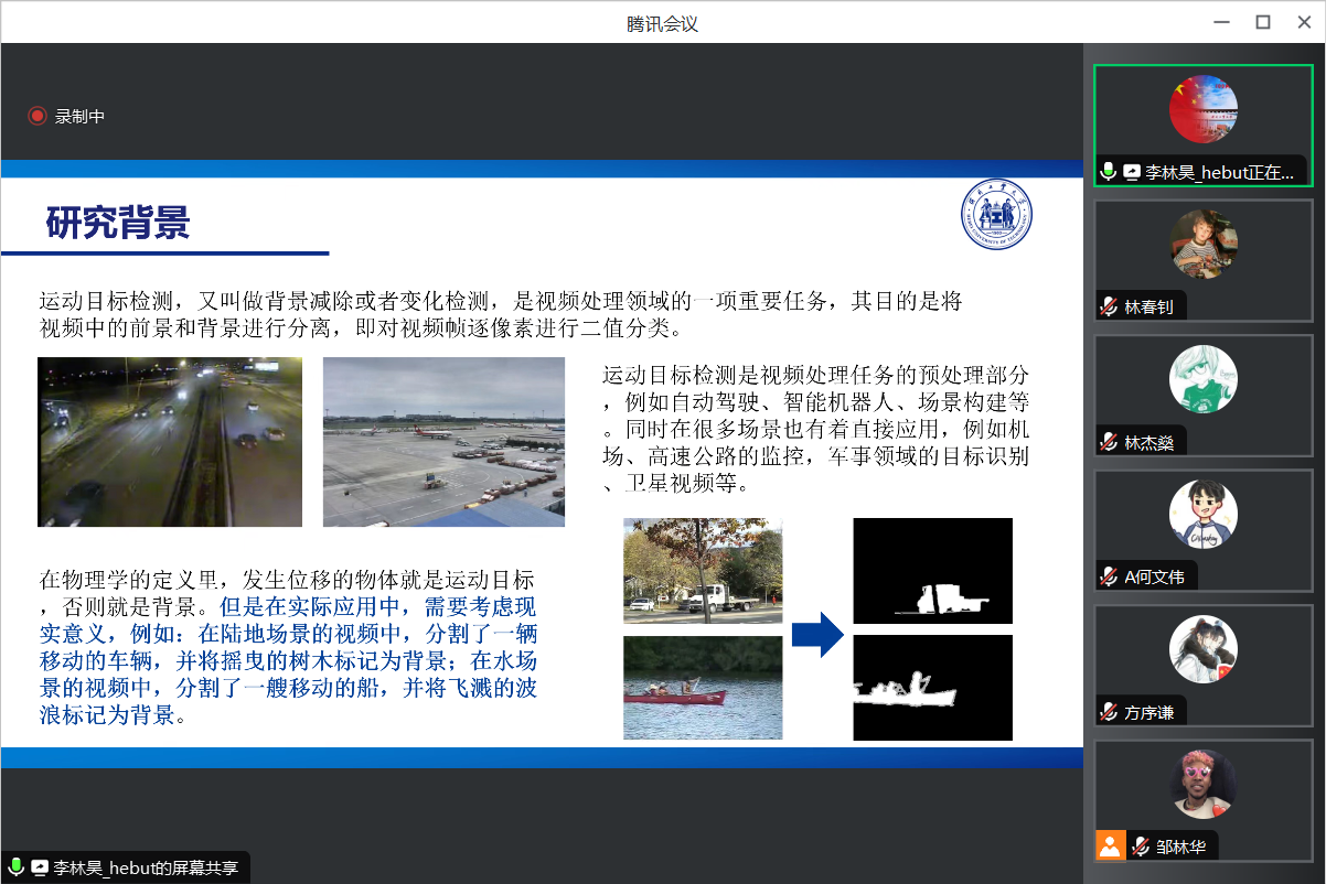 12月12日下午,河北工业大学李林昊副教授应邀为公司师生做题为“移动对象检测方法及应用”的线上专题报告。本次报告由赵红教授主持。