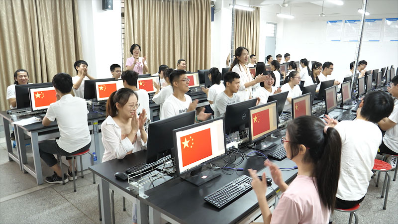 上午8点,在公司ACM实训室,公司党员在开展编程制作国旗动画的活动。活动中童先群和何秋红老师详细指导员工党员和其他ACM队的同学编写程序的要领和技巧,在师生的共同努力下,一面面国旗陆续在计算机上实现动画生成。瞬间,整个实训室里飘扬着一片鲜红的五星红旗。
