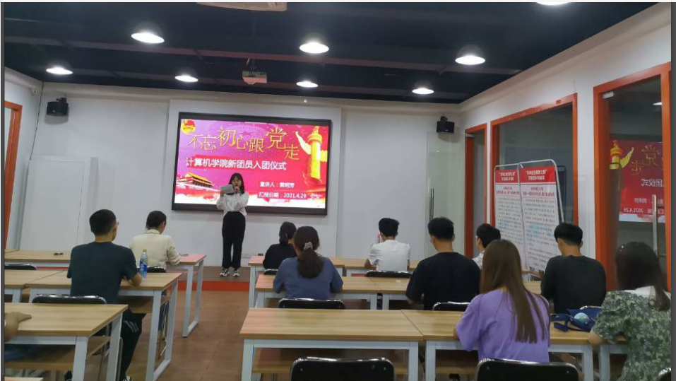 新团员代表上台发言,阐述个人理想与今后努力方向。最后,黄明芳老师勉励新团员,要时刻以高标准严格要求自己,加强自身建设,提高政治素养,坚定理想信念,努力向党组织靠拢,不负韶华!