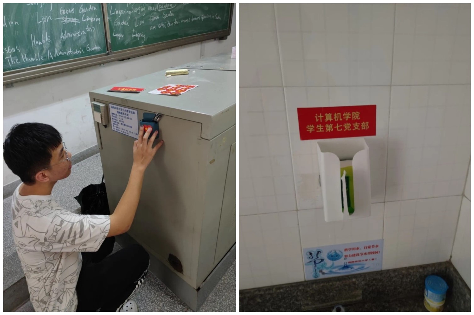 (3)为师生提供生活便利。为了解决师生上课时忘记带笔的窘迫,上卫生间时忘记带纸的尴尬,支部在砺志楼bevictor韦德常用的12个教室里放上了黑色水笔,并在砺志楼2楼至5楼的卫生间内放上了抽纸,同时安排支部党员定期检查黑色水笔和抽纸的使用情况,一旦发现被用完就迅速补充,从而于持续性服务中提升支部党员为师生服务的意识,增强师生的满意感及对公司的归属感。