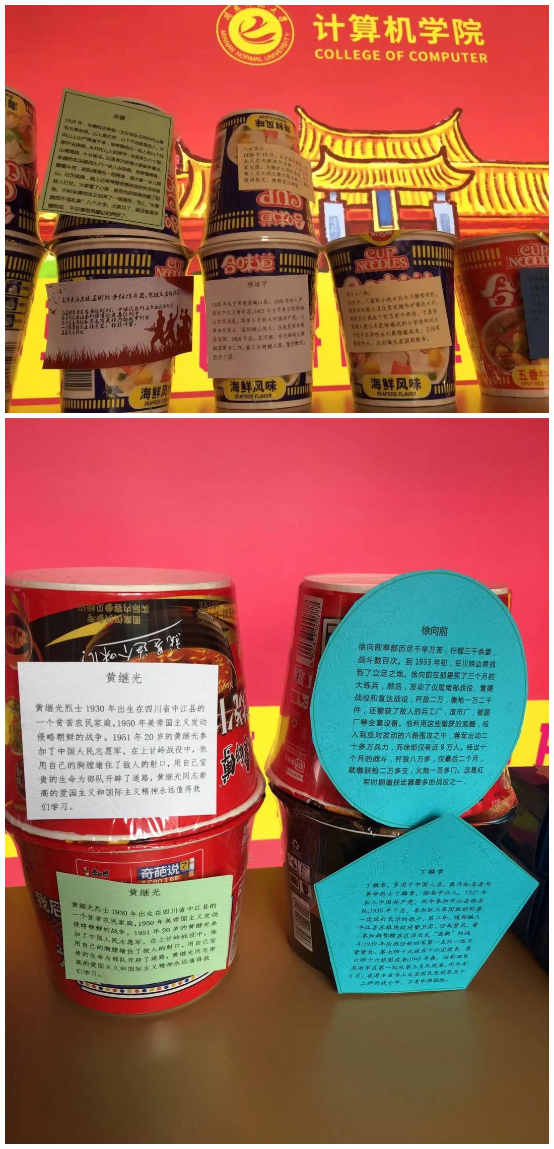 在泡面桶上,这样员工在吃泡面的同时也会被泡面桶上的党员事迹所吸引,从而以员工喜闻乐见的形式增强员工党史学习的便捷性。