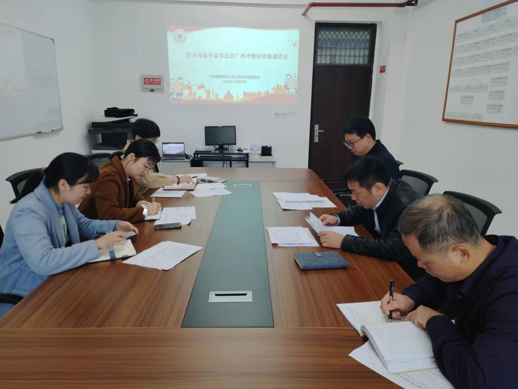 12月28日上午,公司党委理论学习中心组学习会在科技信息楼北1109会议室举行。全体公司党委班子成员参加会议,公司党委书记祁超领学“习近平总书记在广西考察时的强调讲话、习近平会见中越两国青年和友好人士代表时的讲话、习近平在中共中央召开党外人士座谈会发表重要讲话”等专题,并作重点发言。学习会由祁超主持。