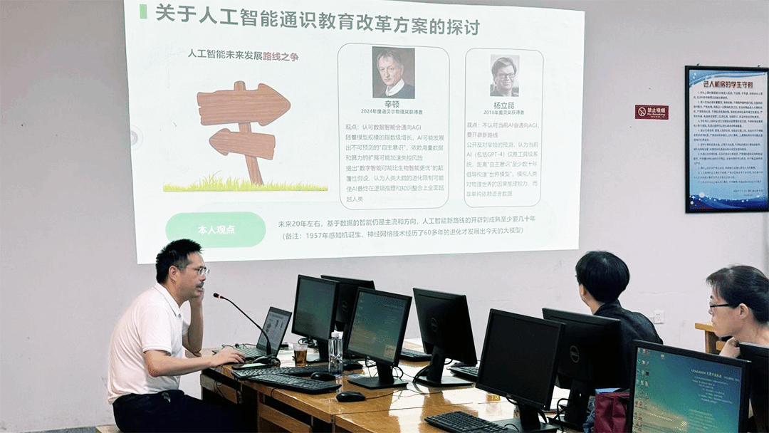 培训会上,林子雨博士以《人工智能通识课改革探讨与课程实施方法》为题作专题报告。报告围绕三大核心内容系统展开:
