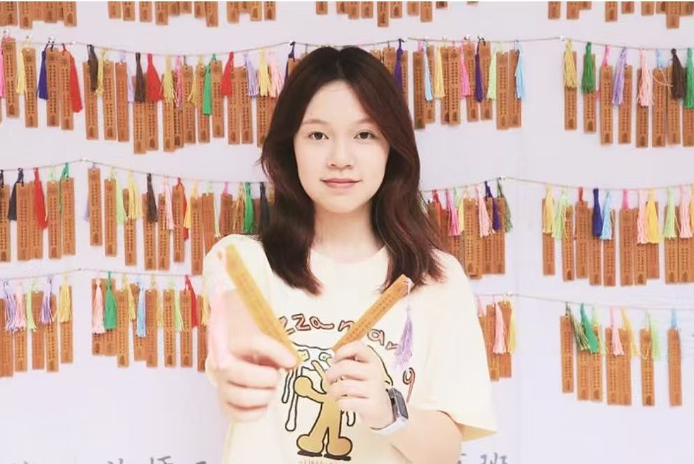 来自龙岩的沈佳文一进文公司,就收获了一枚印有她名字的藏头诗书签:“沈水静流映青春,佳期如梦正当时。文采飞扬书卷香,青春岁月不言迟。”用AI为每位新生创作姓名诗并制成书签,见证了文公司特有的温馨与浪漫。